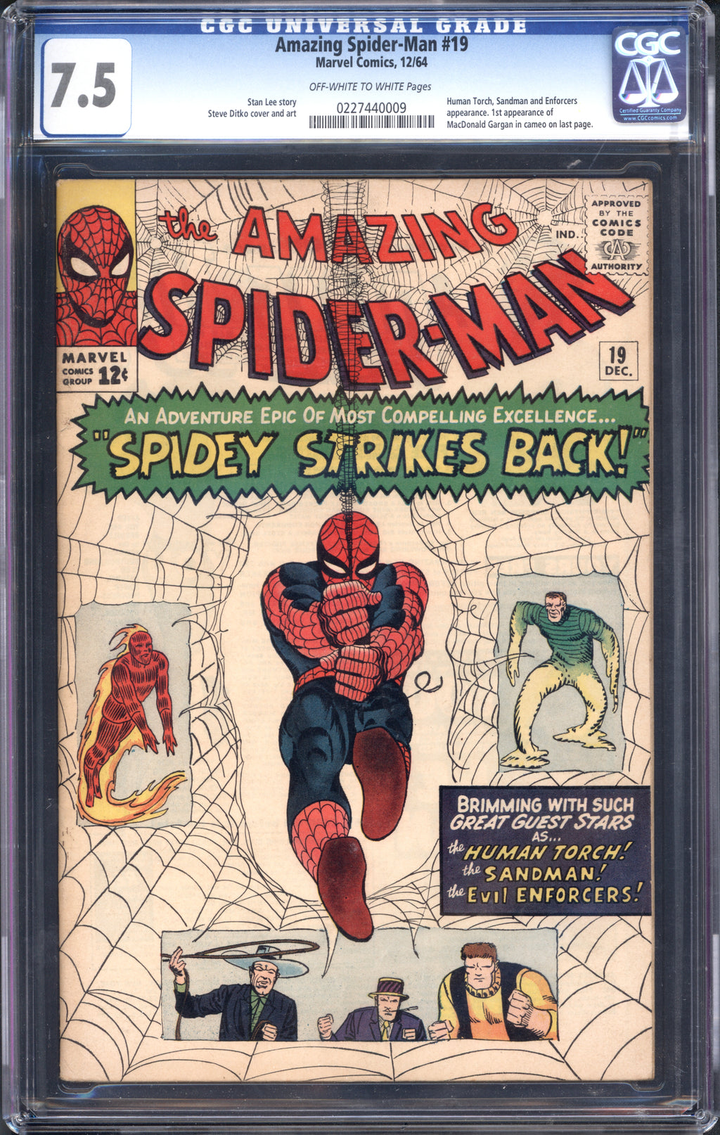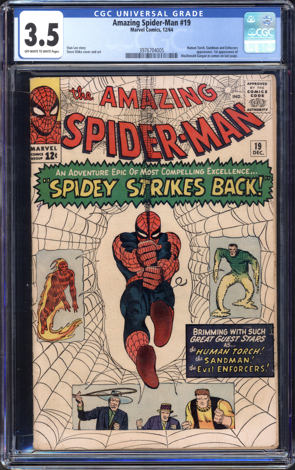 Notes: Human Torch, Sandman and Enforcers appearance. 1st appearance of MacDonald Gargan in cameo on last page.