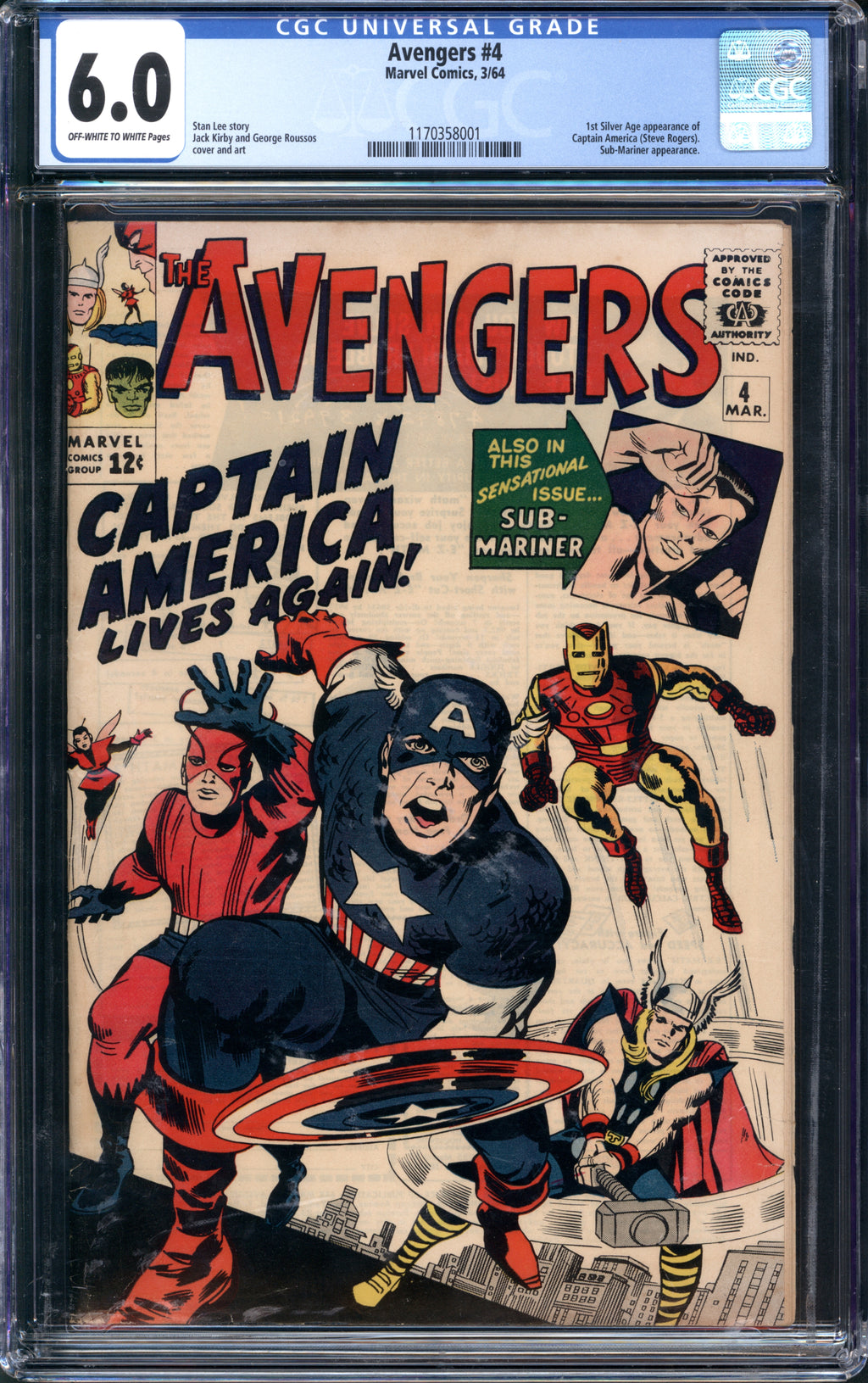 Avengers (1963 1st Series Marvel) # 4 CGC