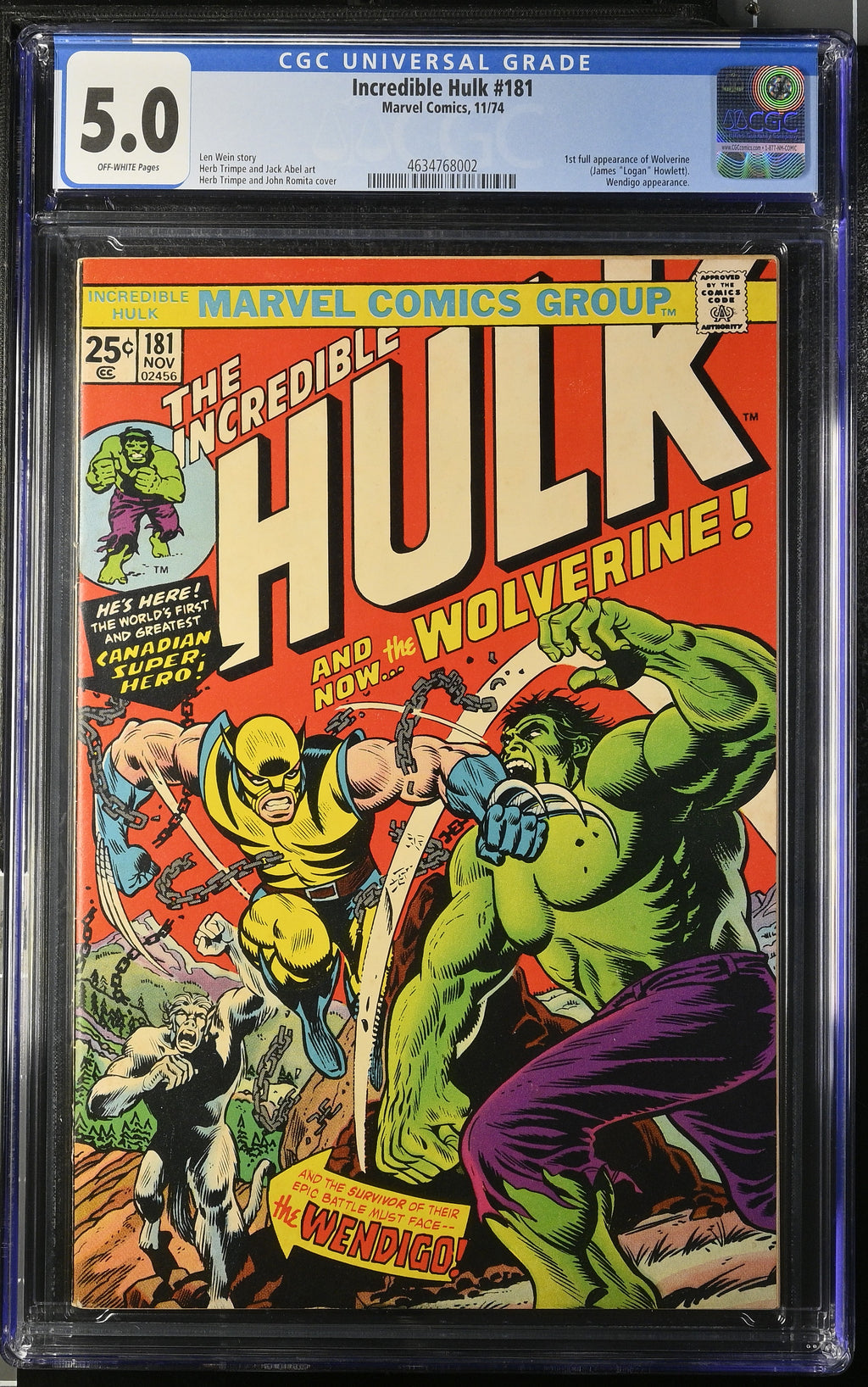 Incredible Hulk #181 is a landmark comic book in Marvel history, marking the first full appearance of Wolverine, one of the most iconic characters in the Marvel Universe. Released in November 1974, this issue features an epic battle between the Hulk, Wolverine, and the savage Wendigo in the Canadian wilderness.