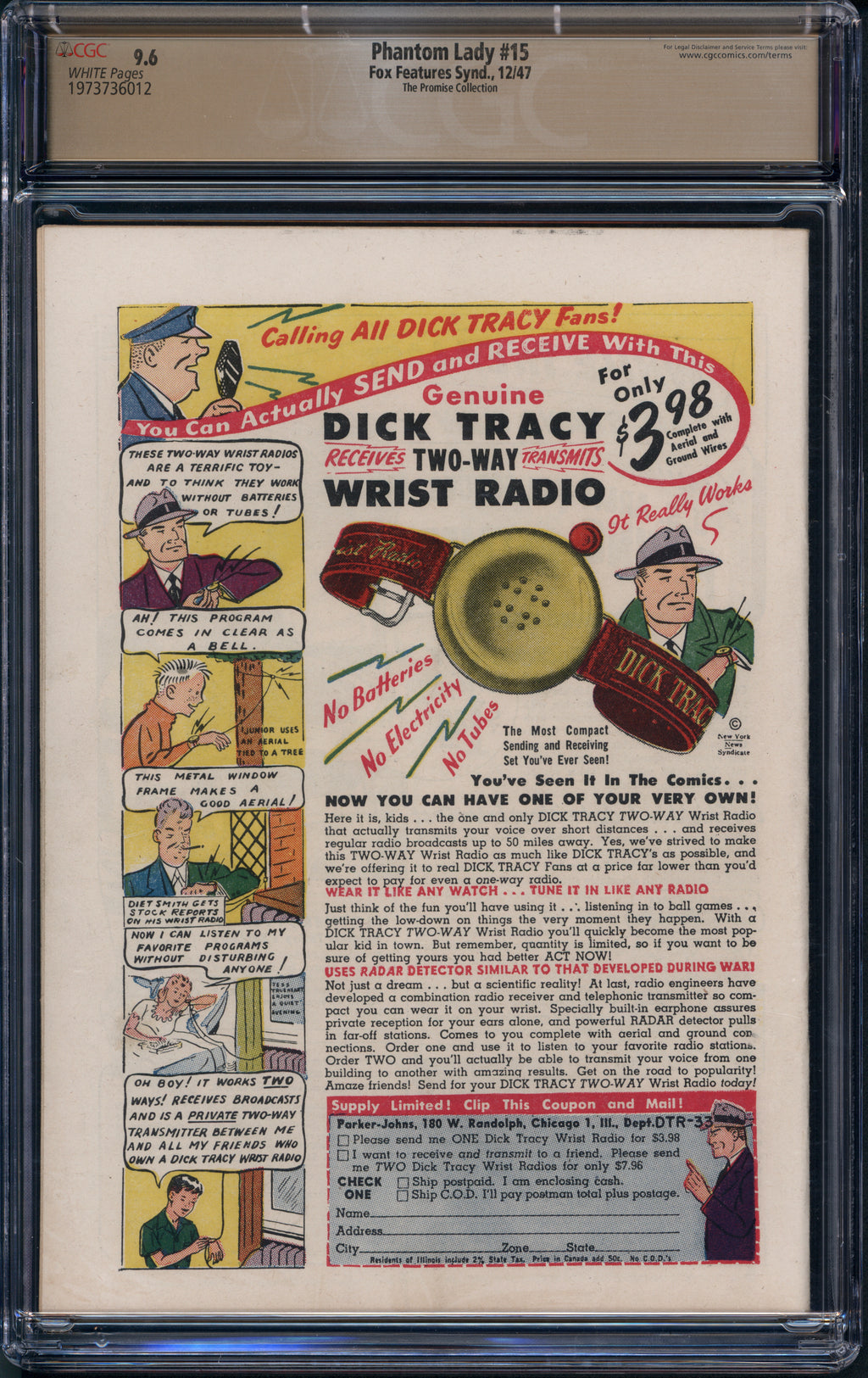 Phantom Lady (1947 Fox Features Syndicate) # 15 CGC Pedigree