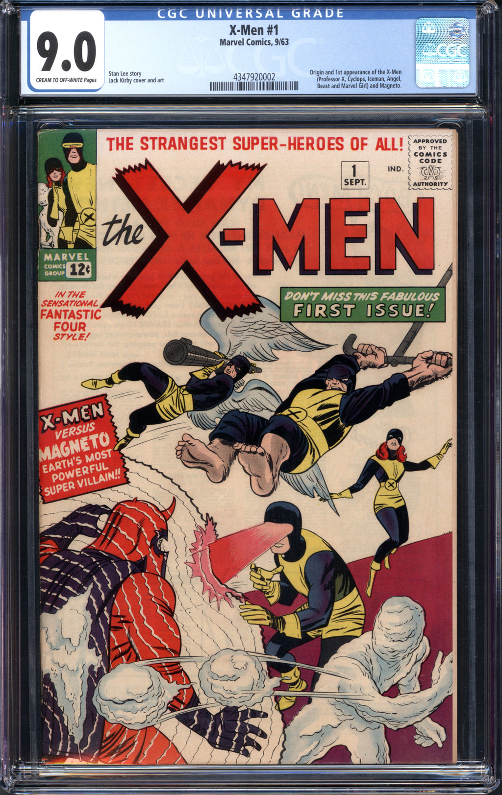 Notes: Origin and 1st appearance of the X-Men (Professor X, Cyclops, Iceman, Angel, Beast and Marvel Girl) and Magneto.